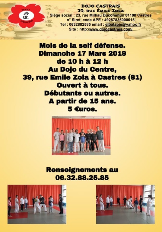 STAGE DE SELF DÉFENSE LE 17 MARS 2019