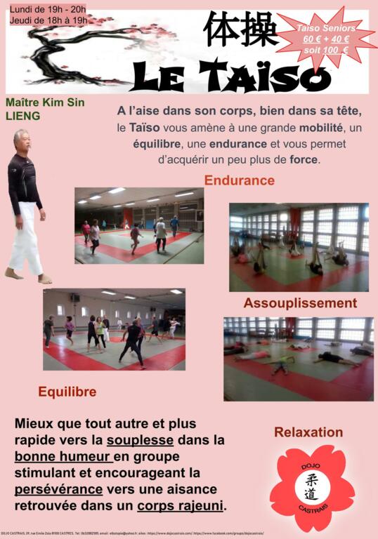 Cours Taïso avec Maître KIM SIN LIENG Lundi 19h - 20h et Jeudi 18h - 19h