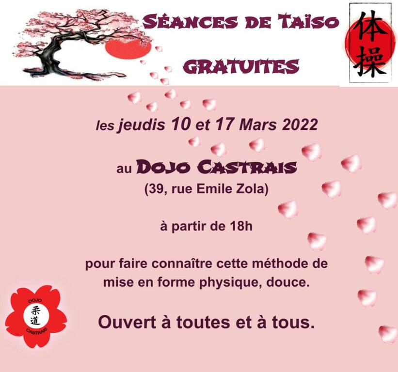 Cours de Taîso gratuits les jeudis 10 et 17 Mars 2022